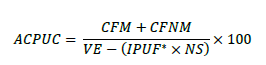 El indicador EO.1.1 Agua Controlada en Puntos de Uso y Consumo – ACPUC corresponde a la medición de la proporción de agua que es consumida por los usuarios, frente al volumen total de agua que se ingresa al sistema, el cual es calculado por medio de la siguiente fórmula según la ficha técnica del indicador del Anexo 4.