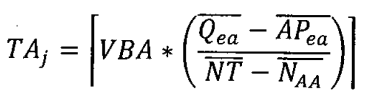 TAj = [VBA * (TAFAi)]" (Subrayado fuera del texto original)