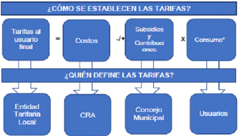 “(...) La tarifa es el precio que cobra la empresa al usuario a cambio de la prestación del servicio público. Es fijada por la junta directiva de la empresa que presta el servicio público o por el Alcalde cuando el servicio es prestado por el municipio, siguiendo las metodologías establecidas por la CRA.