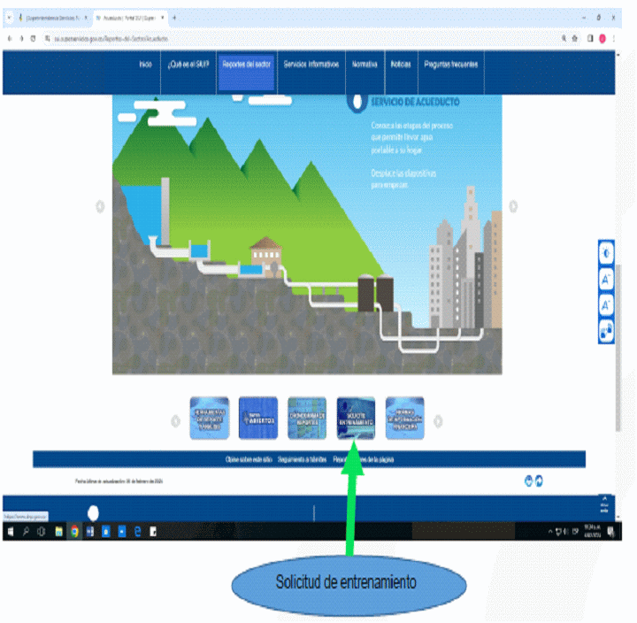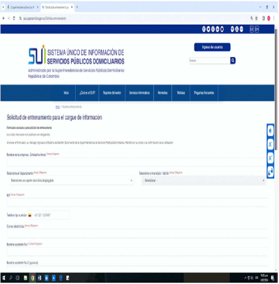 Adicional a los anteriores canales, le recordamos que se puede solicitar entrenamiento a través del siguiente formulario, al cual se puede acceder de la forma que a continuación se señala o accediendo al siguiente link: https://sui.superservicios.gov.co/Solicite-entrenamiento.