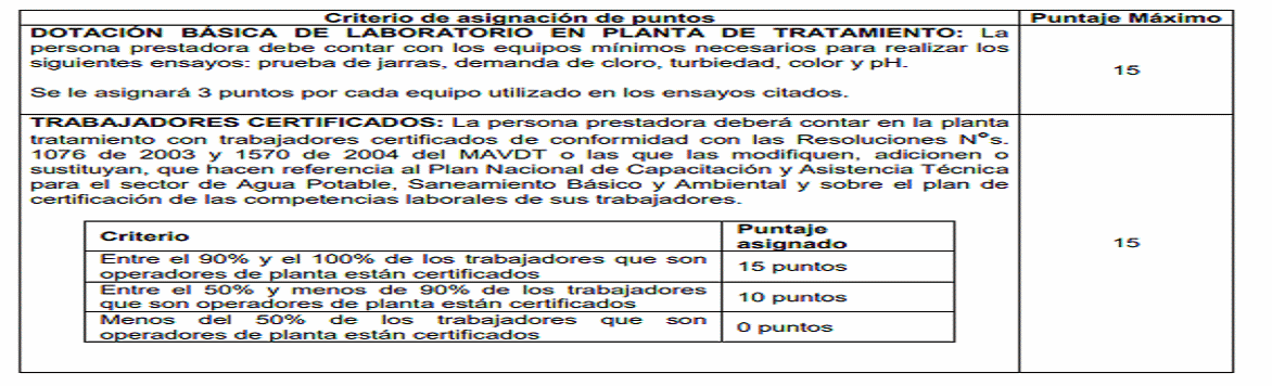 - De conformidad con lo dispuesto en el artículo 13 del Decreto 1575 de 2007, en concordancia con el artículo 18 la Resolución 2115 de 2007, es necesario que la planta cuente con los equipos mínimos necesarios para realizar los ensayos de prueba de jarras, demanda de cloro, turbiedad, color y pH. Asimismo, con trabajadores certificados en los respectivos niveles de competencias laborales para el desempeño de las funciones a su cargo, de conformidad con las Resoluciones 1076 de 2003 y 1570 de 2004 del Ministerio de Ambiente, Vivienda y Desarrollo Territorial o las que las modifiquen, adicionen o sustituyan.