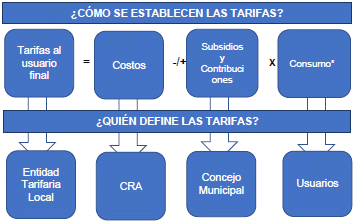 “(…) La tarifa es el precio que cobra la empresa al usuario a cambio de la prestación del servicio público. Es fijada por la junta directiva de la empresa que presta el servicio público o por el Alcalde cuando el servicio es prestado por el municipio, siguiendo las metodologías establecidas por la CRA.