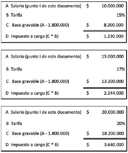 - Teniendo en cuenta las anteriores consideraciones, este Despacho expondrá algunos ejemplos de la manera como se determina el impuesto solidario por el COVID 19, así: