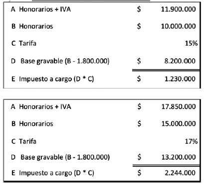 - Cuando el valor del pago o abono en cuenta del salario definido en el punto I de este documento, de los honorarios y del pago pensional sea igual o mayor a 20 millones la tarifa será del 20%.