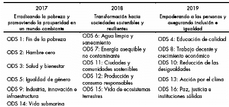 | Tabla 3. Temas priorizados para el foro político de alto nivel de las Naciones Unidas sobre desarrollo sostenible | 49 |