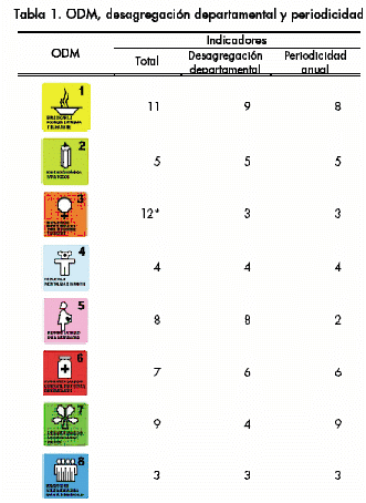 | Tabla 1. ODM, desagregación departamental y periodicidad | 24 |