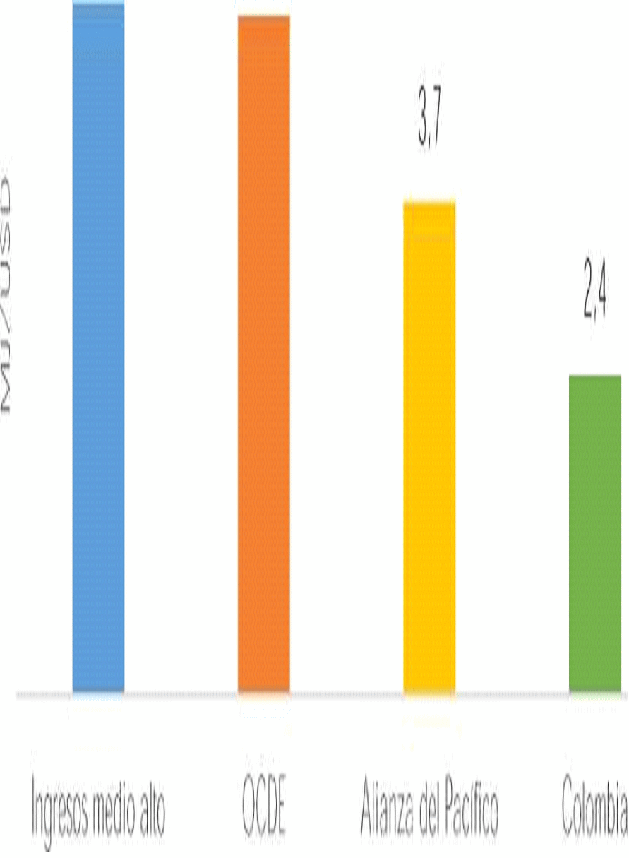 49. La intensidad energética para el sector transporte pasó de 2,93 en el año 2000 a 2,21 en el año 2015 (BEP/millones de pesos colombianos corrientes). Fuente: Enersinc, 2018b.