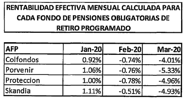 Que el valor de los portafolios del Fondo de Retiro Programado, en efecto, presentaron afectaciones en materia de rentabilidad durante los meses de febrero y marzo de 2020, debido a la desvalorización de las inversiones, veamos: