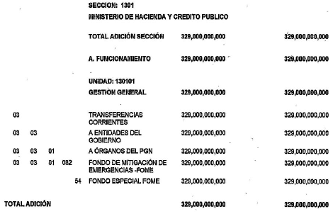 | TOTAL ADICIÓN | 329.000.000.000 | 329.000.000.000 | |