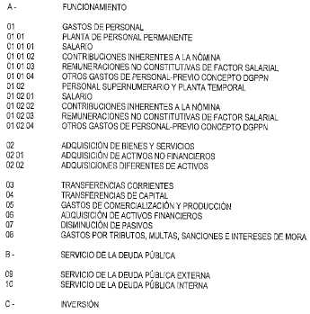 ARTÍCULO 32. Los gastos incluidos en el presupuesto para la vigencia fiscal de 2021 se clasifican de la siguiente forma: