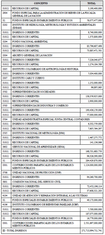 RENTAS DEL PRESUPUESTO GENERAL DE LA NACIÓN