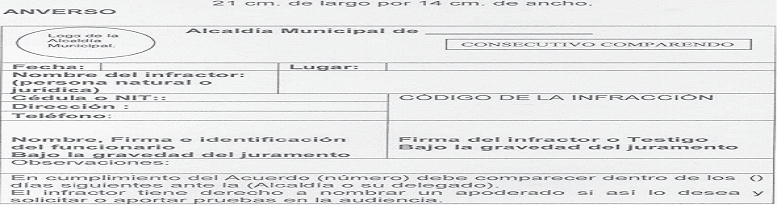 El tamaño del Comparendo Ambiental, debidamente numerado, tendrá las mismas dimensiones del Comparendo de Tránsito, de 21 cm. de largo por 14 cm. de ancho.