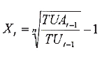 TUt=TUt-1*(1+Xt)*(1+IPCt-1)