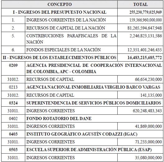 RENTAS DEL PRESUPUESTO GENERAL DE LA NACIÓN