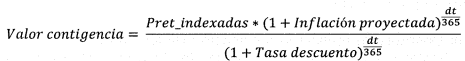 Inflación proyectada: Es la tasa utilizada para proyectar el valor que se debe pagar en la fecha estimada de terminación del proceso (dt).