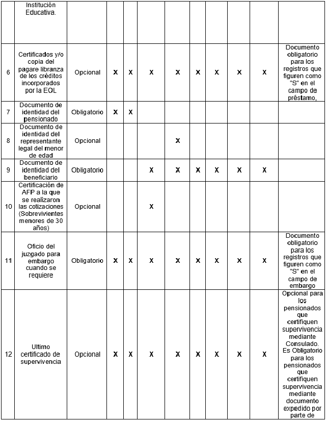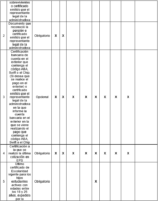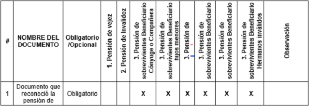 Los soportes documentales serán aportados según corresponda, en función del riesgo de vejez, invalidez o muerte que cubra la prestación, así:
