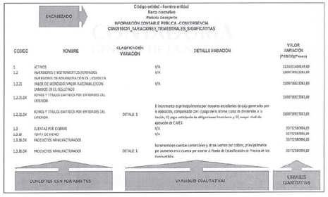Se utiliza con el propósito de explicar el origen de las variaciones significativas presentadas en los cortes de marzo, junio, septiembre y diciembre del reporte de información, para los conceptos contables que evidencien estas variaciones, al comparar los saldos del trimestre reportado con el mismo corte del arto anterior.