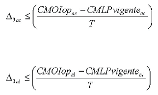 | CMAop: | CMA adoptado por el operador a partir de la aplicación de los resultados del modelo de eficiencia comparativa, o un menor valor si el operador así lo decide, de acuerdo a lo contemplado en la presente resolución. |