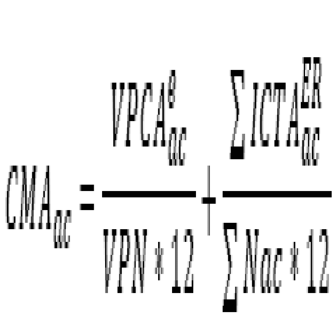 La tasa para el capital de trabajo se calculó a partir de la tasa de descuento aplicable para el costo medio de inversión y el promedio del índice de rotación de cartera, utilizando la siguiente fórmula: