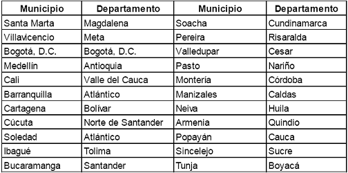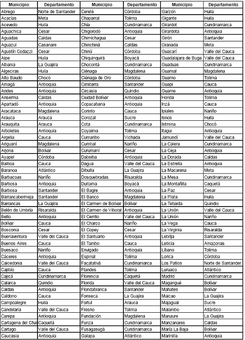 Tabla 2: Municipios en el segmento 2