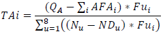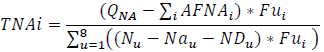 La ecuación correspondiente establece cómo las cantidades de un insumo están relacionadas con otros insumos y con los niveles de los productos de un prestador, para establecer posteriormente distancias respecto de una frontera eficiente de utilización del insumo. La función de distancia tiene la siguiente forma: