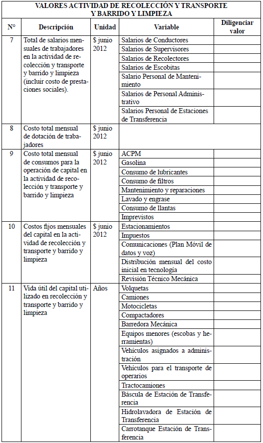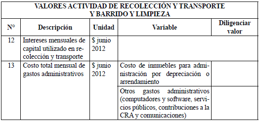 | w7: Costos fijos mensuales del capital en la actividad de recolección y transporte y barrido y limpieza. | |
