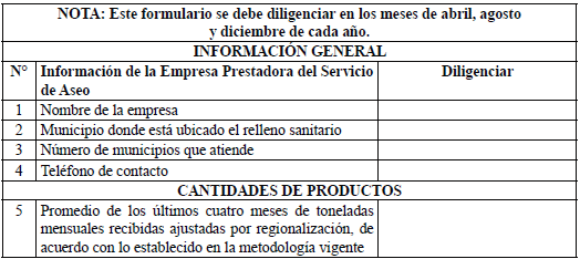 Fuente de información: La CRA utilizará mensualmente la información del formulario del presente anexo que será diligenciado mensualmente por los prestadores de servicios de aseo.