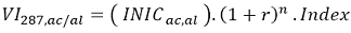 | VI287,ac/al: | Valor de inversiones por cobrar de la Resolución CRA 287 de 2004 a incluir en la , expresado en pesos de diciembre del año base de la presente resolución. |