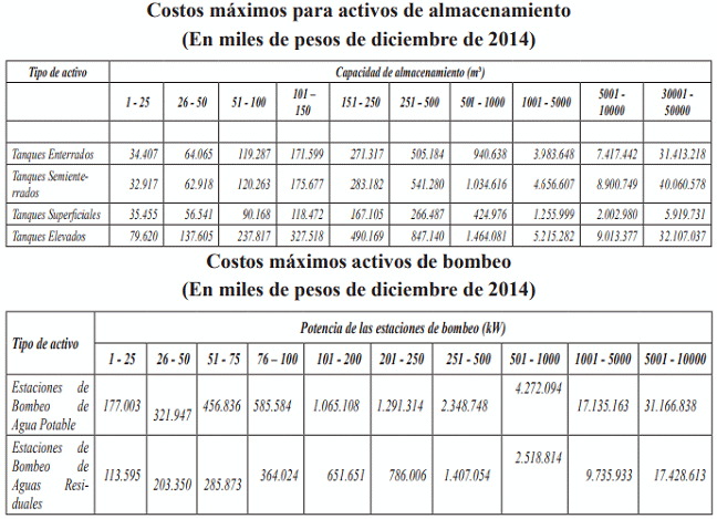 Teniendo en cuenta lo anterior, se presentan los máximos costos establecidos por la Comisión para los diferentes componentes de los sistemas de acueducto y alcantarillado, los cuales deben ser empleados por parte de las personas prestadoras para verificar que sus costos totales se encuentren por debajo de los valores que se exponen en las siguientes tablas:
