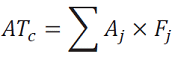 | ATc: | Área total de lavado en el área de confluencia, teniendo en cuenta las frecuencias, expresada en metros cuadrados al año. Dicha área equivale a la suma de las áreas de lavado, determinadas en el Anexo de Lavado de áreas públicas del Plan de Gestión Integral de Residuos Sólidos Municipal (PGIRS) y por los prestadores de las actividades de recolección y transporte en el Programa de Prestación del servicio, multiplicadas por la frecuencia (número de veces de lavado al año), según la siguiente expresión: |