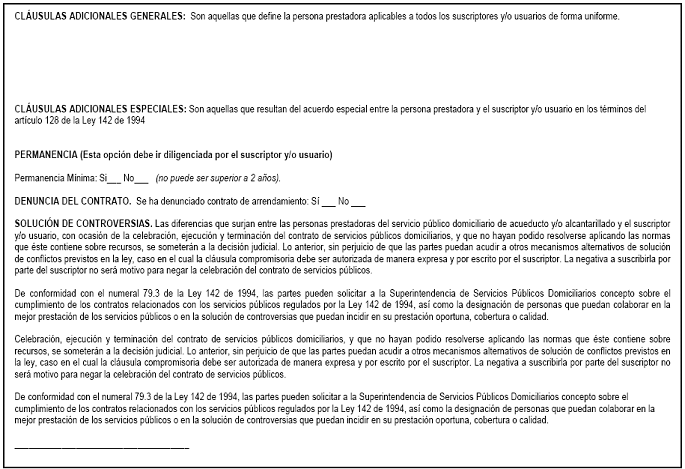 MODELO DE CONTRATO DE SERVICIOS PÚBLICOS PARA PERSONAS PRESTADORAS DE LOS SERVICIOS PÚBLICOS DOMICILIARIOS DE ACUEDUCTO Y/O ALCANTARILLADO QUE CUENTEN CON MÁS DE 5.000 SUSCRIPTORES Y/O USUARIOS EN EL ÁREA RURAL O URBANA.