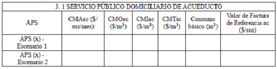 Valor de la factura de referencia para acueducto y/o alcantarillado: Corresponde al valor resultante de la suma del valor del cargo fijo y el valor del cargo por consumo multiplicado por el consumo básico de cada APS, para los servicios de acueducto y/o alcantarillado según corresponda, atendiendo a los servicios que sean incluidos en la solicitud de declaratoria del mercado regional en cada APS.