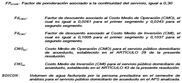 DmaxICON: Factor de descuento máximo asociado a la continuidad del servicio público domiciliario de acueducto. Este factor se obtiene con la siguiente expresión: