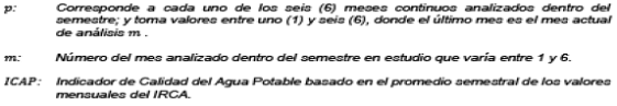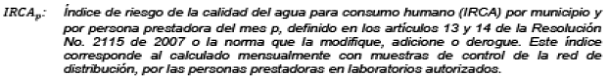 “Artículo 86. Cálculo del Indicador de Calidad del Agua Potable (ICAP). La expresión que permite determinar este indicador es la siguiente: