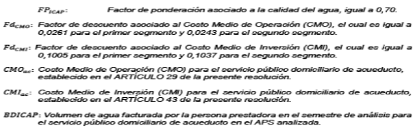 DICAPS: Valor del descuento asociado a la calidad del agua que debe ser reconocido a cada uno de los S suscriptores del servicio público domiciliario de acueducto.