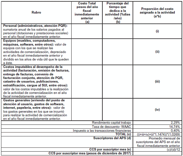 h. Factor de contribución o subsidio correspondiente a cada suscriptor.