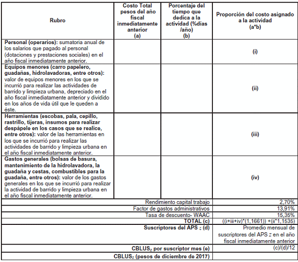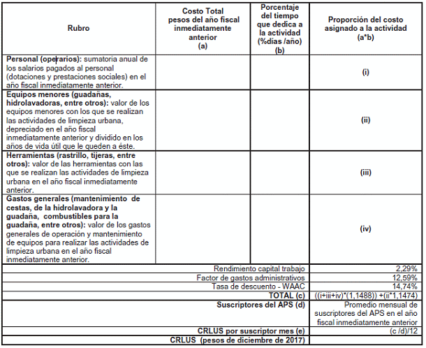 - Cantidad estimada de toneladas de residuos sólidos recolectadas y transportadas en el APS de la persona prestadora j (toneladas/mes) de la siguiente manera: