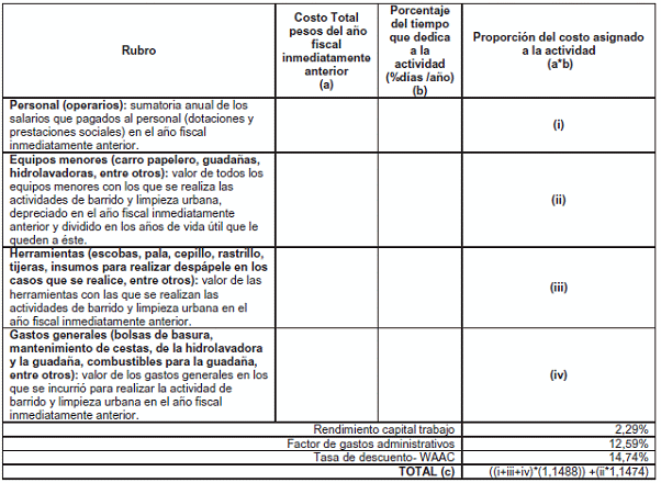| RPDF | Recursos a percibir por concepto de disposición final. (Pesos/mes). |