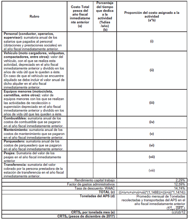 Se debe considerar que para el cálculo de CRT, la persona prestadora de Recolección y Transporte de residuos sólidos no aprovechables que dispone residuos sólidos en un relleno sanitario que no cuenta con báscula de pesaje, deberá reemplazar la variable