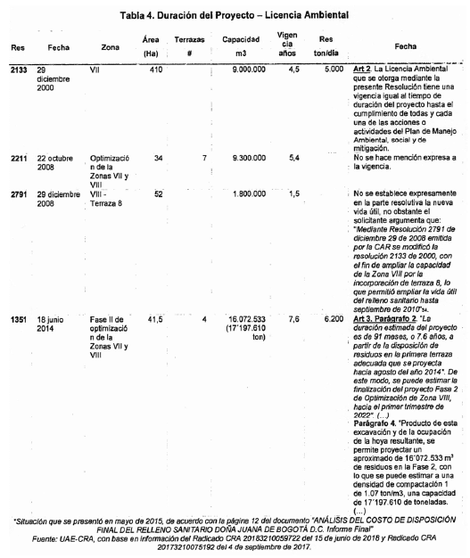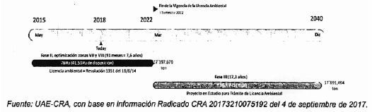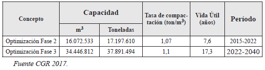 (...) la Fase 2 se proyectó para una capacidad total de disposición de 16.072.533 m3 que compactados a una tasa de 1,071 ton/m3 equivale a 17.197.610 toneladas representando una ampliación de la vida útil del RSDJ en aproximadamente 7,6 años a partir entre mayo de 2015 hasta el primer trimestre 2022.