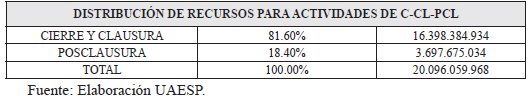 | Valor del total de los activos aportados para la actividad de Disposición Final (pesos de diciembre de 2014). | |