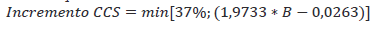 Incremento CCS: Porcentaje en el que se incrementa el CCS cuando en un municipio se preste la actividad de aprovechamiento. Cuando la variable Qea sea igual cero, el valor del Incremento CCS será cero.