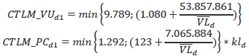 Costo máximo a reconocer por tratamiento de lixiviados por tonelada (pesos de julio de 2018/tonelada). El costo máximo de tratamiento de lixiviados por metro cúbico (CTLMd) se estimará con las siguientes funciones a continuación según los respectivos escenarios por objetivo de calidad.