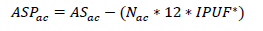 ASPac: Agua potable suministrada corregida por pérdidas eficientes en el año base, la cual se estima con la siguiente fórmula: