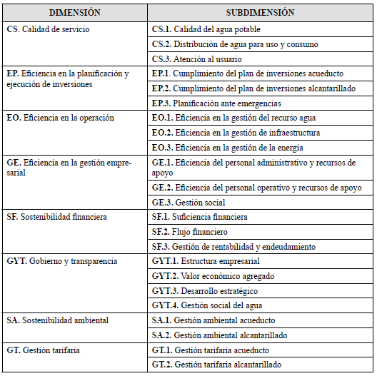 PARÁGRAFO. A los productores de servicios marginales o para uso particular, que no comercialicen los servicios públicos de acueducto y/o alcantarillado con terceras personas, no les son aplicables las siguientes dimensiones y subdimensiones: