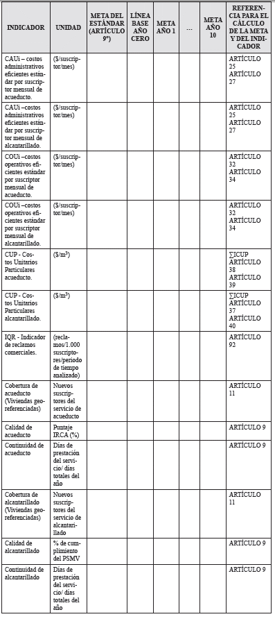 Para el cálculo de los costos de referencia se deben definir las metas anuales para los años 1 a 10, teniendo en cuenta los estándares de eficiencia establecidos en la presente resolución.