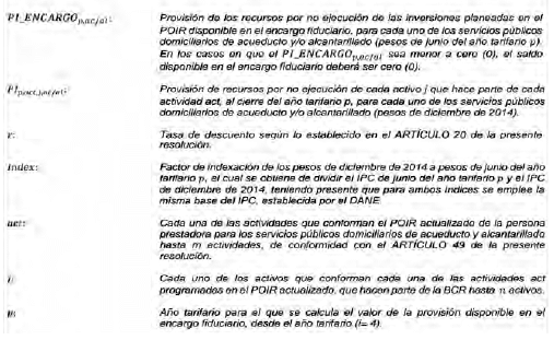 "ARTÍCULO 109. Provisión de recursos por no ejecución de las inversiones planeadas en el POlR Una vez finalizado el cuarto año tarifario, y en los años subsiguientes, la provisión de recursos por no ejecución de las inversiones planeadas en el Plan de Obras e Inversiones Regulado - POlR, se determinará con base en la siguiente fórmula: