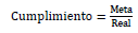 39 Si la meta es creciente, es decir, que necesita aumentar el resultado del indicador para mejorar, se debe aplicar la fórmula = (Resultado/ Meta) *100, si por el contrario se requiere de una disminución en el resultado para mejorar el indicador, se debe aplicar la fórmula= (Meta/ Resultado) *100.