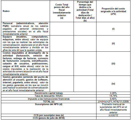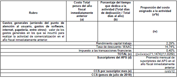 Cargo fijo. Es el Valor unitario por suscriptor o usuario, que refleja los costos económicos involucrados en garantizar la disponibilidad permanente del servicio, independientemente del nivel de uso.