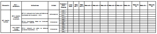 29 Se establecen dos filas, la primera para indicar la meta general del indicador, y la segunda para indicar el valor meta con el que se calcula el indicador, el cual debe establecerse acorde al desarrollo del estudio de costos del prestador.
